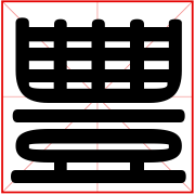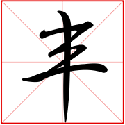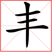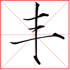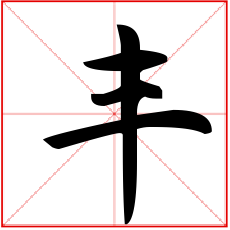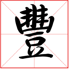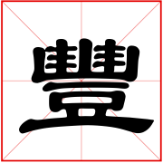 (象形。甲骨文字形,上面象一器物盛有玉形,下面是“豆”(古代盛器)。故“豐”本是盛有贵重物品的礼器。这由“豊”字可以得到证明。古文“豐与“豊”是同一个字,《说文》:“豊,行礼之器也。”本义:古代盛酒器的托盘)