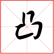 高出〖convex;raised〗。高于周围的,如球形或圆形的外部或其一部分那样弯曲的——指从外面观看一个球面或曲线。如:凸兀(高出);凸凸(高出貌);凸凸囊囊(犹鼓鼓囊囊);凸凹(高低不平);凸杯(满杯);凸岸;凸镜;凸透镜
