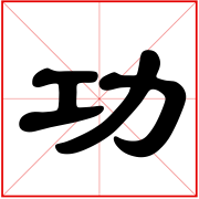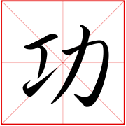(会意。从力,工声。“工”亦兼表字义,表示用力从事工作。本义:功绩,功业;功劳)