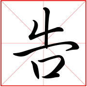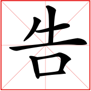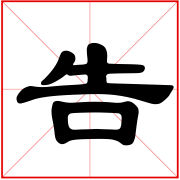 又如:告誓(宣誓;祷告);告教(告喻教诲);告匮(宣告物质短缺);告谴(宣示谴责之意)