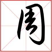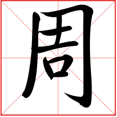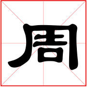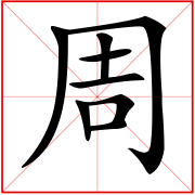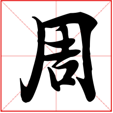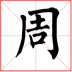 (象形。甲骨文字形,在“田”里加四点,郭沫若认为“周象田中有种植之形。”有稠密和周遍的意思。小篆析为会意,从用口。段玉裁认为,善用口则周密。本义:周密;周到而没有疏漏)