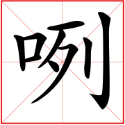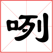 口微张,嘴角向两边伸展〖grin〗。如:疼得直咧嘴;他咧着嘴笑