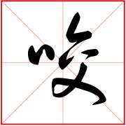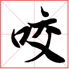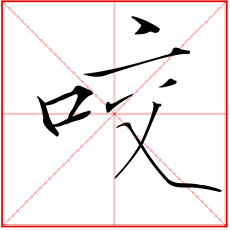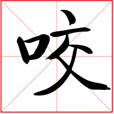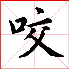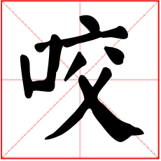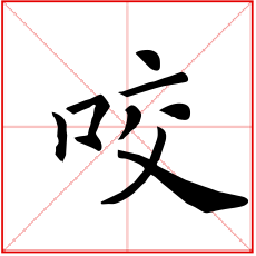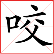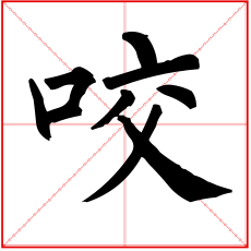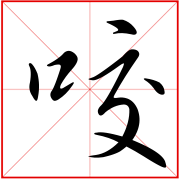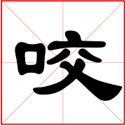(形声。从口,交声。《说文》本从“齿”。本义:用牙齿把东西夹住或切断弄碎)