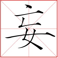 (形声。从女,亡声。本义:胡乱)