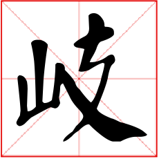 (会意。从山,从枝省,支亦声。本义:古地名。陕西岐山县。又山名)