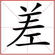 低;次;不好〖poor;bad〗。如:差池(差劲,不行)