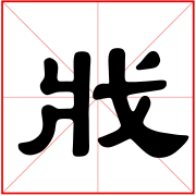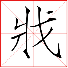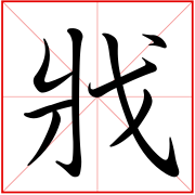 (会意。从戈,从爿。戈,古代用以横击、钩杀的重要武器。爿(pán),劈开的竹木片。本义:残杀、杀害)