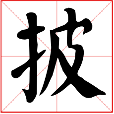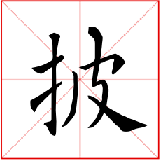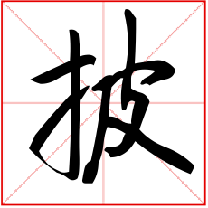 又如:披究(拨开观赏);披草(拨开荒草);披抉(拨开挑剔);披视(拨开来看);披云雾(拨开云雾得见青天);披拨(犹推开)