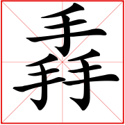 〖pickpocket〗俗称扒手为三只手,故写作“掱”