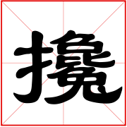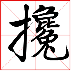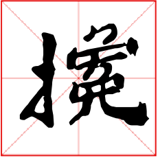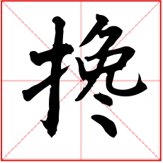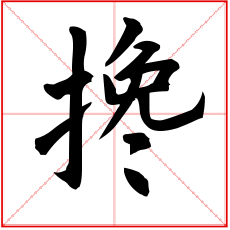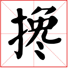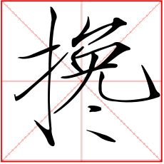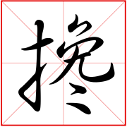 (形声。从手,毚(chán)声。本义:扶,牵挽)