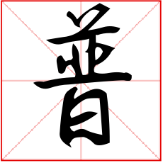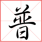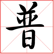 (会意兼形声。小篆字形,从日,从并。“并”亦可以看作声。“普”是二人并排站着。本义:日无光)