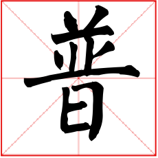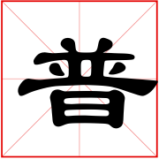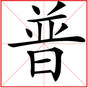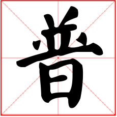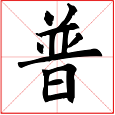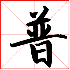 又如:普席(全席);普及本(即普及版);普天(遍天下);普加(普遍赐与;普遍施与);普存(普遍富足);普讯(遍及;普遍);普施(普遍施与);普恩(普施的恩泽)