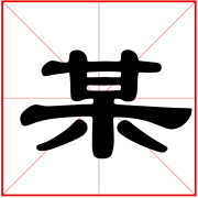 又如:某人;某天;某官某(某某官(叫)某某的(人)。某,文言虚指代词。此处前一个代此人官职,后一个代他的姓名);某等(我等,我们);某们(我们,某是代词);某舍(犹某公子)