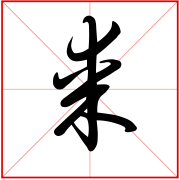 (象形。金文字形。像木上结一个果实,本是“梅”的象形。(méi)本义:梅)