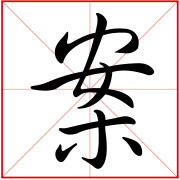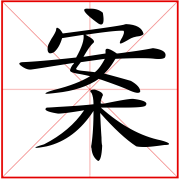又如:书案;伏案;条案,拍案(拍桌子)