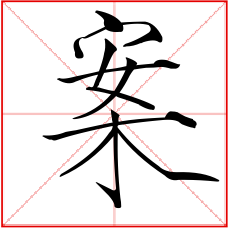 (形声。从木,安声。本义:木制的盛食物的矮脚托盘)