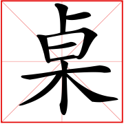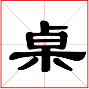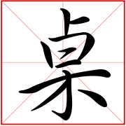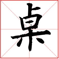 (形声。从木,卓省声。桌字本作“卓”。卓有高而直立之义。后来人们又根据“棹”是木制的特点另制“桌”字。俗又作“棹”。本义:桌子)