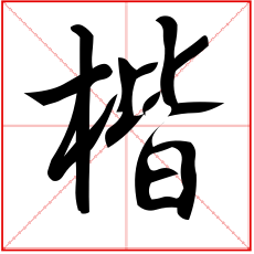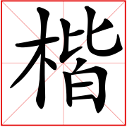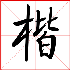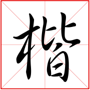 (形声。从木,皆声。①(jiē)本义:木名。即“黄连木”。楷树枝干疏而不屈,因以形容刚直②法式,典范)