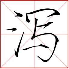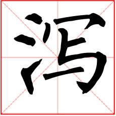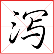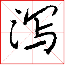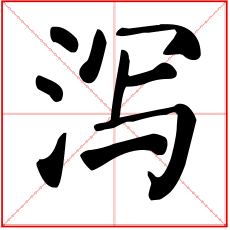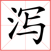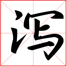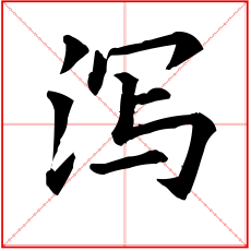 又如:泻泪(形容泪流如注);泻溜(泻下小股水流);泻月(形容泉水如月光倾洒);泻润(谓雨水倾泻滋润。比喻帝王下施恩泽)