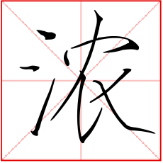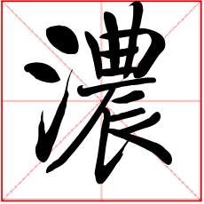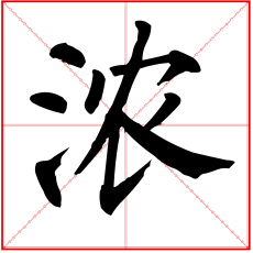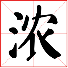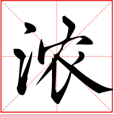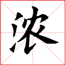 又如:浓抹(厚施脂粉);浓福(厚福);浓烟;浓雾;浓繁(郁郁葱葱);浓圈密点(在文字旁加上许多圆圈或点。常以表示值得注意或精采之处)