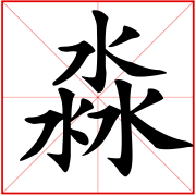 详细解释淼miǎo【形】(会意。从三水。又作“渺”。本义:水大的样子)同本义〖(expanseofwater)vast〗淼南渡之焉如?——《楚辞·九章·哀郢》又如:淼淼(水势浩大的样子);淼渺(水广阔无际的样子);淼漫(水流广远的样子);淼漭(辽阔的样子)淼茫miǎománg〖dimexpanseofwaterstretchesasfarastheeyecansee〗水广远的样子