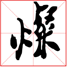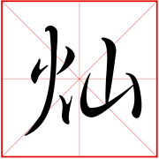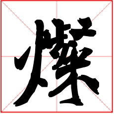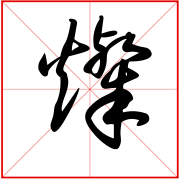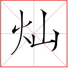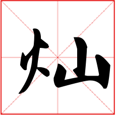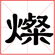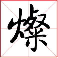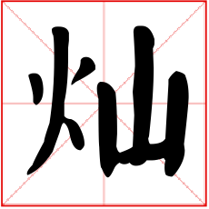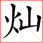 (形声。从火,粲声。本义:灿烂,光彩鲜明耀眼)