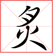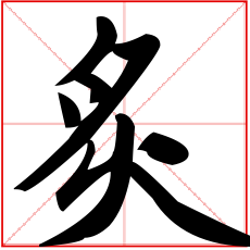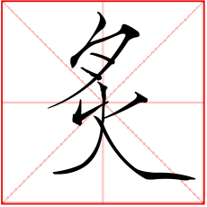 (会意。从肉从火。小篆字形,肉在火上烤。本义:烧烤,把去毛的兽肉串起来在火上薰烤)