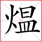 (形声。从火,昷(wēn)声。本义:郁烟,不见火焰的燃烧而产生出来的许多烟)