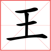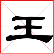 (会意。本作“士”,是能独立任事的人,后加一横,表示在“士”之上,即人间的最高统治者,而帝是天上的最高统治者。后“帝”、“王”同步降职,帝成了人间的皇帝,而“王”成了对臣子的最高封爵。本义:天子、君主)