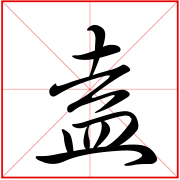(会意。本作“盇”,从血,从大。段玉裁《说文解字注》:“皿中有血而上覆之,覆必大于下,故从大。”本义:覆盖)合〖gather〗