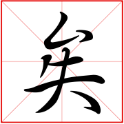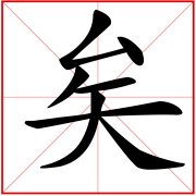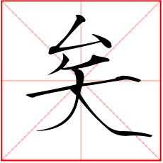 (形声。小篆字形,上面是“以”字,下面是“矢”。从矢,以声。“以”也可以理解为象矢飞逝的声音,是完成的语气。本义:语气词。是“了”)
