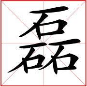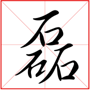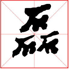 (会意。从三石。“三”非确数,表示很多。本义:石头多)众石累积〖ofheapofstone〗