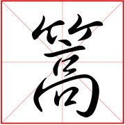 (形声。从竹,高声。从“竹”,表示与竹有关。本义:撑船的竿)同本义〖punt-pole〗