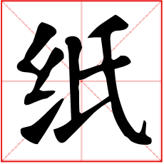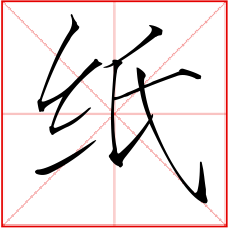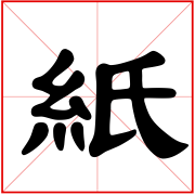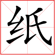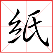(形声。从糸(mì),氏声。纸的原料本是破旧的丝绵,故从糸。本义:纸张)