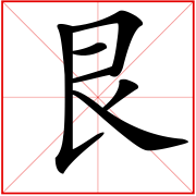 八卦之一,代表山〖mountain,adiagramoftheEightDiagrams〗。如:艮岳(山名。在今河南开封城内东北隅;宋徽宗政和年间在汴京东北隅堆土为山,广集天下奇花异石、珍禽怪兽、佳果文竹于此处)
