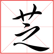 (会意。从艸,从之,之亦声。本义:灵芝,菌类植物的一种)