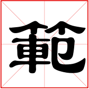 通“笵”。型范。俗称模子。如:范金(用模子浇铸金属品)