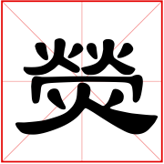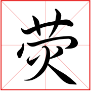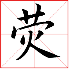 又如:荧烛(微弱的烛光);荧然(光微弱的样子);荧燎(微光);荧耀(微光);荧华(闪烁的亮光);荧煌(辉煌);荧晔(光明的样子);荧灿(明亮)