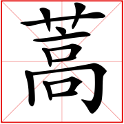 (形声。从艸,高声。本义:草名。有白蒿、青蒿、牡蒿、臭蒿等多种。特指青蒿)