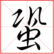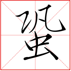 详细解释蛩qióng【名】蝗虫的别名〖locust〗飞蛩满野。——《淮南子》传说中的异兽名〖astrangebeast〗。如:蛩蛩距虚(传说中的异兽。蛩蛩与距虚为相类似而形影不离的二兽);蛩蛩毡(有蛩蛩距虚图案,象征成双成对的毛织坐卧具或垫具)古书上指蟋蟀〖cricket〗。如:蛩声(蟋蟀的鸣声);蛩机(蟋蟀的别称)