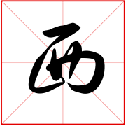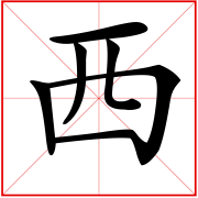 (象形。据小篆字形,上面是鸟的省写,下象鸟巢形。“西”是“栖”的本字。本义:鸟入巢息止)