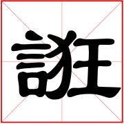 又如:诳驾(因失陪而向客人说的道歉的话);诳谬(狂妄荒谬);诳上(欺骗君上、尊长);诳世(欺骗世人);诳动(欺骗煽动)