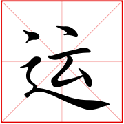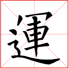 (会意。从辵(chuò),军声。本义:运行;运转;转动)