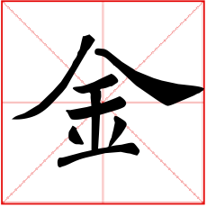 金,五色金也。黄为之长。久埋不生衣,百錬不轻,从革不违,西方之行,生于土,从土左右。注:象金在土中形。——《说文》