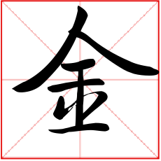 比喻尊重、贵重〖respectful;noble〗。如:乌金墨玉;金榜留名;金诺(对他人守信不渝的美称);金言(珍贵、宝重的言辞;佛陀的教言为金言);金交(比喻友谊深厚)