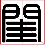 又如:闺窦(穿墙小门);闺閤(宫中小门,内宫深处);闺牖(宫内的门窗);闺壸(内宫)