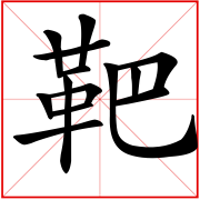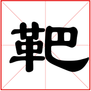 (形声。从革,巴声。从“革”,表示与皮革有关。本义:辔首垂下部,即辔革)