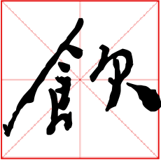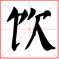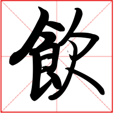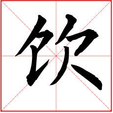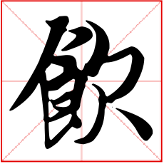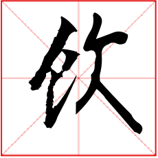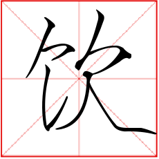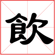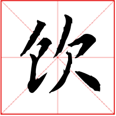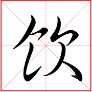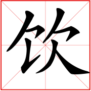 (会意。甲骨文字形。右边是人形,左上边是人伸着舌头,左下边是酒坛(酉)。象人伸舌头向酒坛饮酒。小篆演变为“飲”,隶书作“饮”。本义:喝)