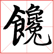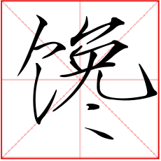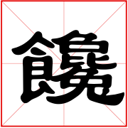 (形声。从食,毚(chán)声。本义:贪嘴,贪食)