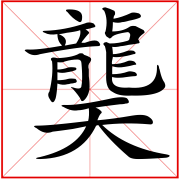 中国五代时南汉刘岩为自己名字造的字,义为“飞龙在天”。